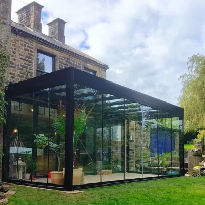 في زيلكون، نحن متخصصون في إنشاء غرف زجاجية أنيقة للحدائق تمزج بسلاسة بين الحياة الداخلية والخارجية. هياكلنا الزجاجية المصممة حسب الطلب توفر ملاذًا مثاليًا للاسترخاء أو الترفيه أو الاستمتاع بالطبيعة، مع توفير الحماية من العوامل الجوية.